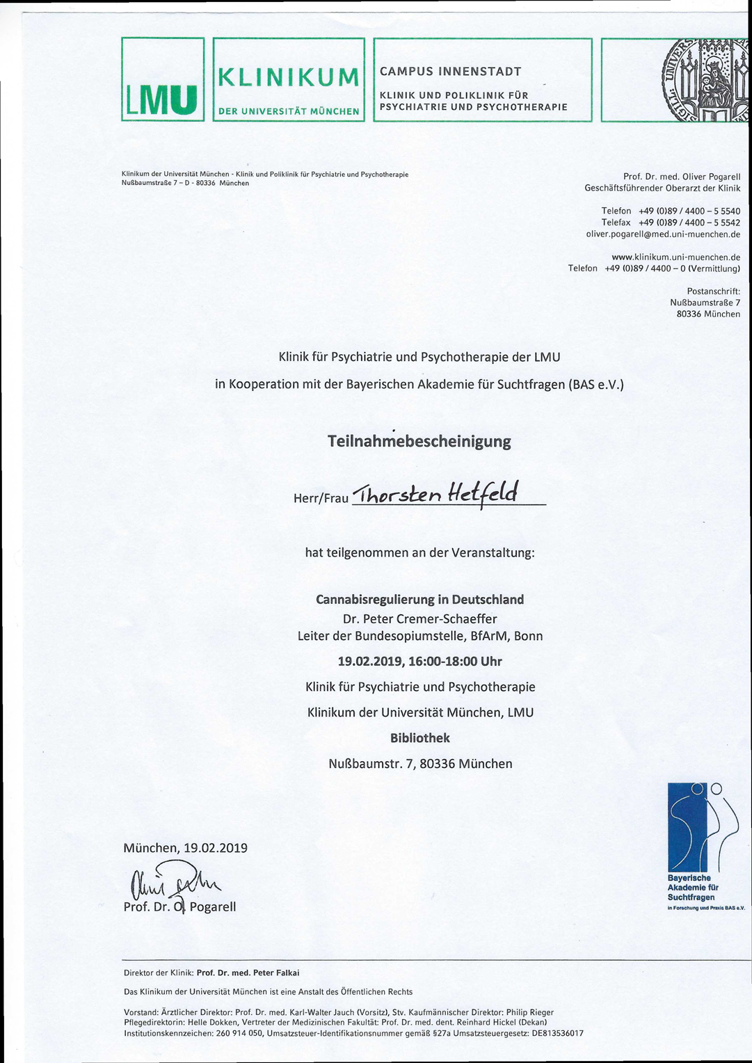 For the field/sector of cannabis as medicine, I recommend in the Ebersberg area
