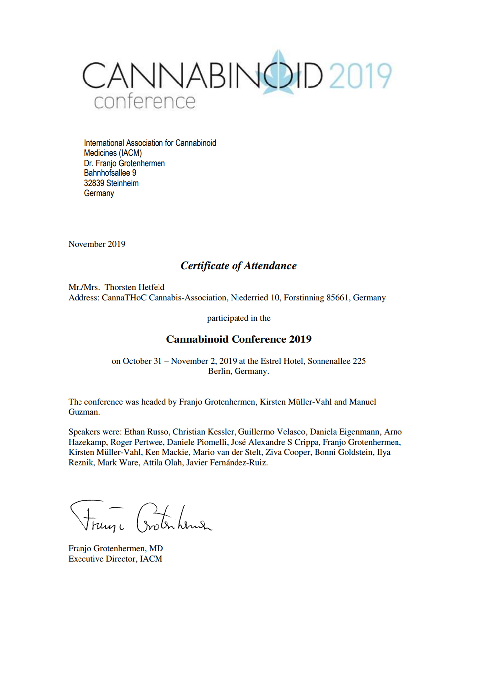 I myself have been a cannabis patient since 2015 and because of my high level of medical and therapeutic success, I deal with everything that concerns cannabis as medicine.